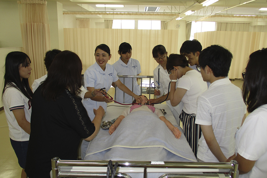 看護の実践には思考・判断のプロセスが重要であり、それを養うための実習を大切にしています。主たる実習施設は、日本病院機能評価の認定を受けている4病院に絞ることで、学生は、慣れた実習環境の中で、落ち着いて実習に臨めます。学校と実習施設は連携を密にとり、学生に必要な支援をしていきます。