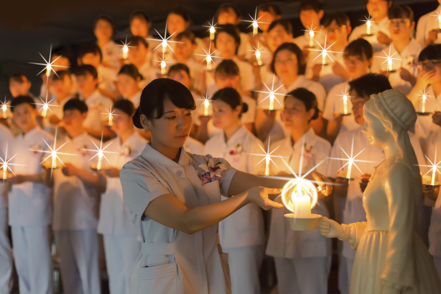 本格的な臨地実習に入る2年生が、あらためて看護師への道を誓う儀式です。