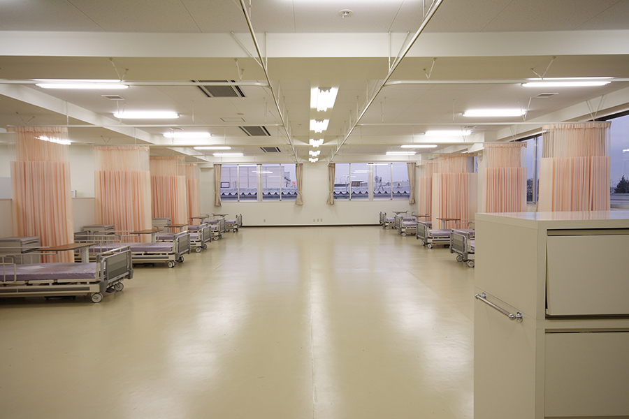 メインの実習室です。ベッド12台設置。広々としたスペースで、演習を行います。