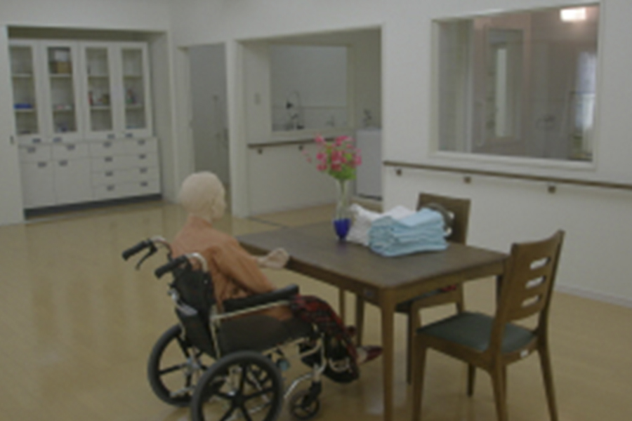 訪問看護を学ぶため、和室、お風呂・トイレなどが設置され、自宅を再現した形になっています。